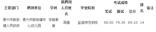 原標(biāo)題:泰興市2014年公開(kāi)招聘教師擬聘用人員公示(三)