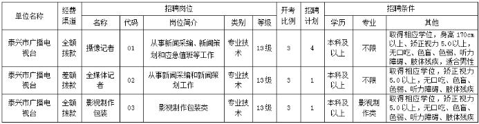 1.《泰興市廣播電視臺(tái)公開(kāi)招聘工作人員崗位表》