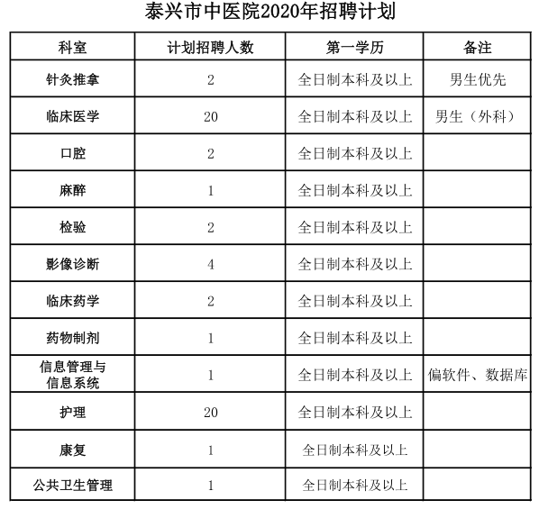 因業(yè)務(wù)發(fā)展需要,泰興市中醫(yī)院現(xiàn)面向社會(huì)公開(kāi)招聘臨床、護(hù)理、醫(yī)技、藥學(xué)、信息管理等崗位人才若干名,待遇從優(yōu),具體人員信息見(jiàn)下表: